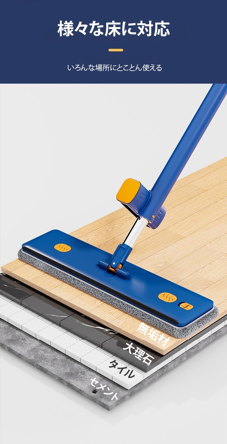 手洗い不要・乾湿両用フロアモップ