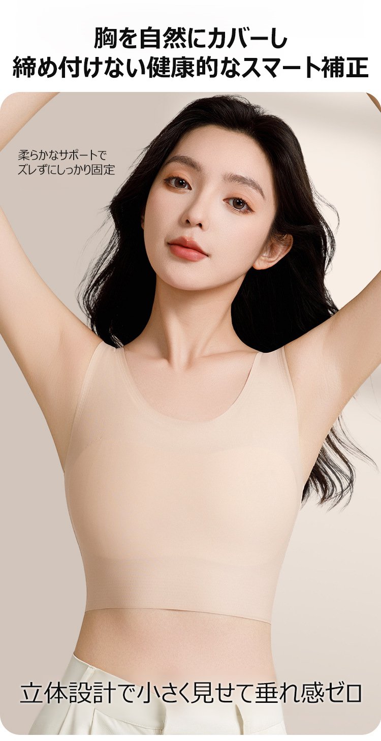 世界的なランジェリーデザイナー特製、大きな胸を小さく見せるスリム効果、副乳抑制、垂れ防止シームレス背心型インナー